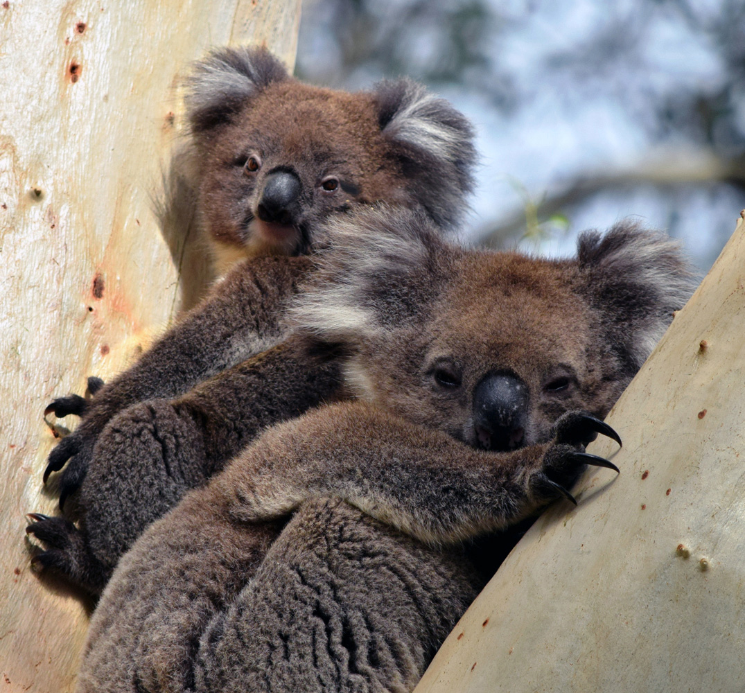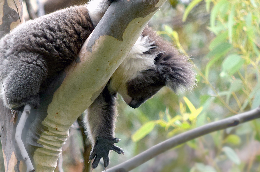 If you see a koala up a tree alone and drenched in torrential rain, don’t underestimate it. Having especially thick insulating fur (the most of any marsupial) it is specifically adapted to stave off wind and rain as well as solar radiation. Unique body symmetry and long claws mean for tree scaling and effortless mobility in treetops.