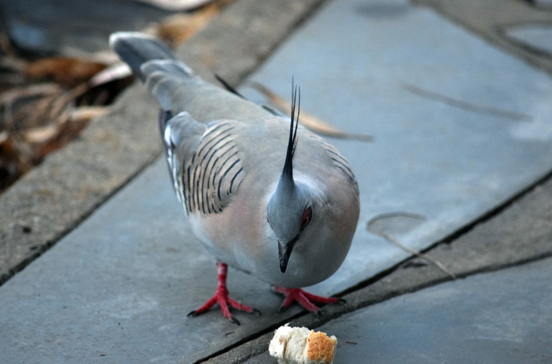 Champions of navigation and flying, pigeons and doves have adapted to vastly variable habitats. The Crested Pigeon is known for its beautiful head feathers, bright pink legs and feet and its subtle coloured wing feathers. A single ‘woo’ call and a special tinkling sound created during take-off are also distinctive. The Crested Pigeon must have close proximity to water.