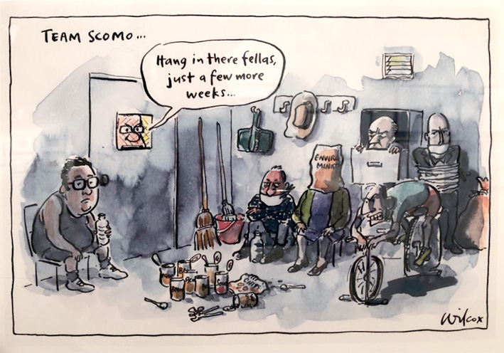 I stumble upon an unusual show in the State Library on my way to the bus and what a surprise. It’s strangely relevant without any reference to the dreaded COVID. But Behind the Lines is a political cartoon show based around the year 2019 so there is no pandemic, no stock market crash or storming of the Capitol.. It’s like stepping back in time without the final act. How refreshing to see everything lampooned so. Nothing is off the table. You are taken on a journey that is hilarious and informative and you are reminded of the loony politicians and their destiny of obscurity. Curator and writer, Jennifer Forest had to choose eighty odd pictures from over one thousand exhibits for the show and managed a fabulous selection. The Museum of Australian Democracy of Old Parliament House has a repository of images that defies its somewhat archaic title. Where cartoonists reign, political correctness is certainly absent. Nothing escapes the cutting satire of such traditional means as pen and paper regardless of updated communications such as messaging or YouTube. I guess everything is brought down to size. As I wander around perusing the pictures I can’t help feeling strangely uplifted. Is it because of the lifting of contagion restrictions or because of the lampooning? Who cares this is a gas.
