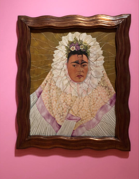 I have never seen a Frida Kahlo painting until I had the opportunity to attend the Frida & Diego: Love & Revolution exhibition at the AGSA. There are roughly 150 works from the Jacques and Natasha Gelman Collection showcasing some of Frida’s most iconic works. The show is especially successful because her work hangs side by side with Diego Rivera’s and affords the chance to be seen in the broader context of the Mexican Modernist movement. I will focus primarily on Frida’s work for the sake of this discussion.